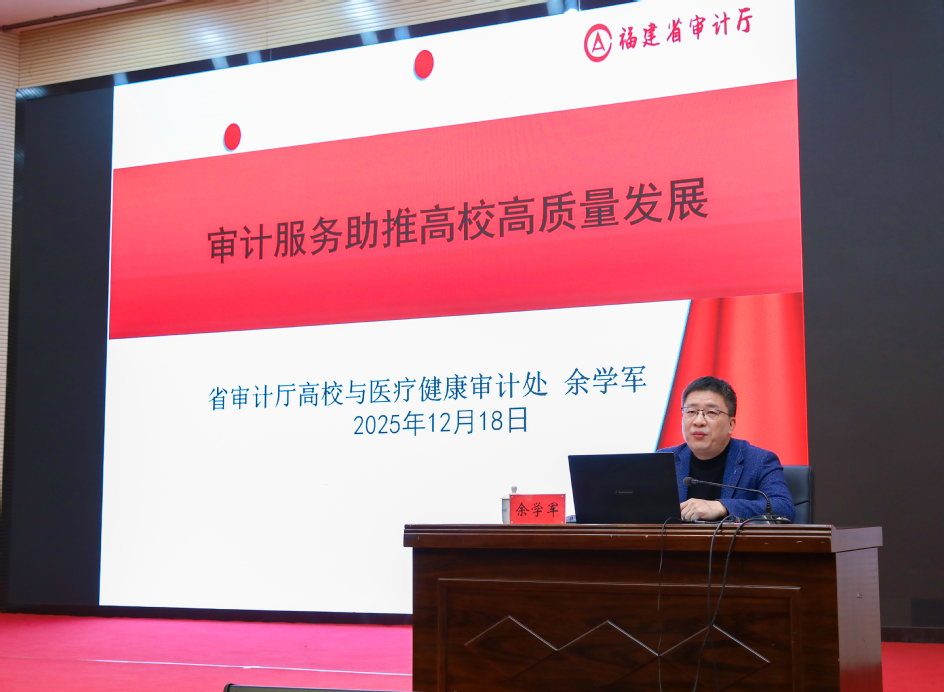 12月18日下午,学校在旗山校区学术报告厅举办学习贯彻党的二十届四中全会精神专题培训暨中层干部履职能力提升班。福建省审计厅高校与医疗健康审计处三级调研员余学军应邀来校作专题报告。校党委副书记詹松青,校纪委书记、监察专员戴福康出席会议,全体中层干部100余人参加培训。余学军以《审计服务助推高校高质量发展》为题,系统解读了审计相关法律法规,深入阐释了审计监督的重要意义,重点围绕领导干部经济责任审计的主要内容...2025-12-19