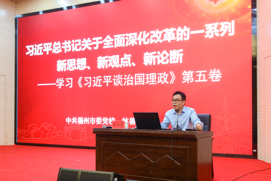 在报告中,林善炜紧扣主题,围绕“为什么改、改什么、怎么改”的逻辑主线,系统梳理了习近平总书记关于全面深化改革的重要论述的理论脉络,深入阐释了“以改革破题 以创新赋能”的改革实践路径和方法论,为与会人员学好悟好用好《习近平谈治国理政》第五卷和习近平同志《论坚持全面深化改革》第一卷、第二卷提供了指导。