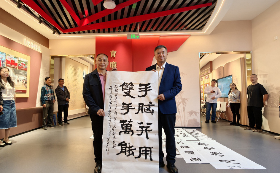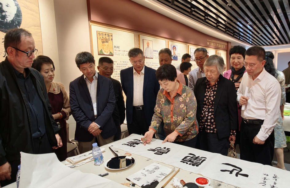 在书画笔会现场,来自民建福建省委直属艺术二支部、七支部的书画家和福建省知名画家林之本挥毫泼墨,以书言志、以画传情,围绕“多党合作”“闽山闽水”“民建初心”等主题,历时3小时创作书画作品20余幅,吸引大批会员驻足观摩、交流品鉴。