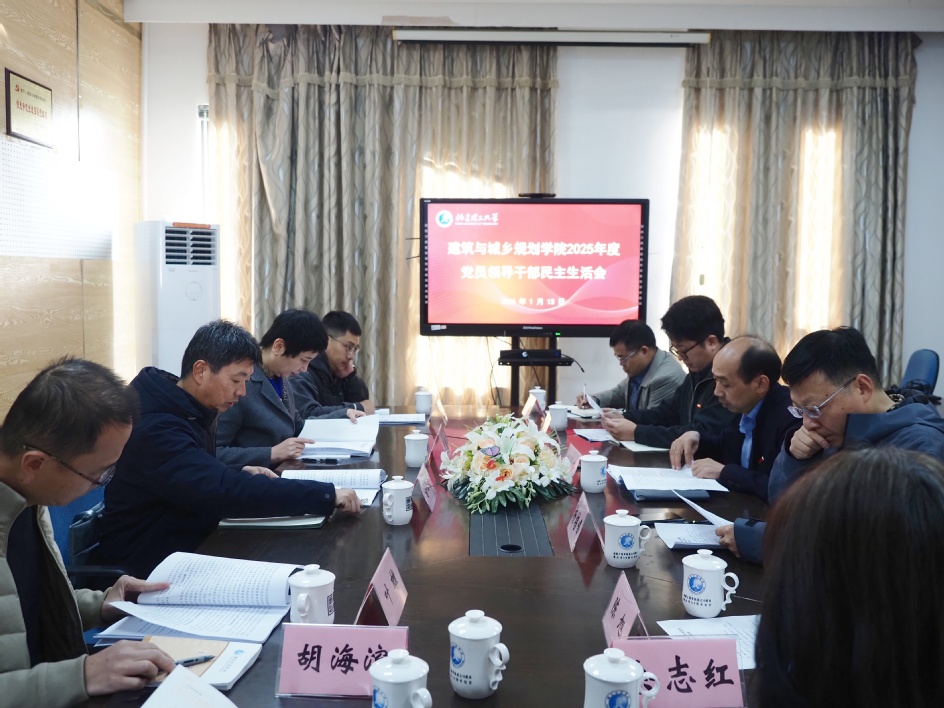 1月13日上午,建筑学院在逸夫楼二楼会议室召开2025年度党员领导干部民主生活会,校党委副书记詹松青,统战部、纪检监察室有关同志到会指导。建筑学院党政班子成员、党委委员参加会议。